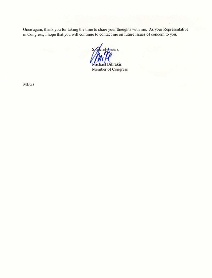 再次感谢您花时间与我分享您的想法。作为您在国会的代表,我希望您能继续就您关注的问题与我联系。