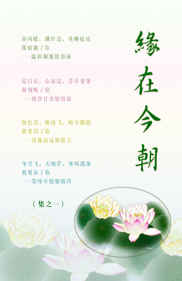 【明慧网二零零二年十一月十六日】《缘在今朝(集之一)》选录了1999年8月16日至2002年10月12日期间大法弟子所作诗歌32首,所配插图如绘画、木刻、剪纸等艺术作品除有特殊注明者外皆为海内外大法弟子所作。选材和格式清新,不失为大法弟子对正法修炼这段特殊历史时期自己所思、所见、所期、所经历的部分记载。