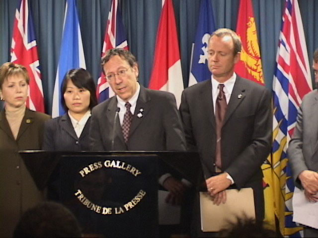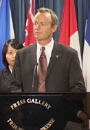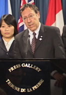 女士们,先生们,感谢你们今天的出席和你们的关注。民主与自由是对所有加拿大人最首要的事情。宗教自由是我们特别关心的事。今天,我们将不分政党的来提出这个问题。现在有数位议员将就法轮功和他们继续在中国大陆所受遭遇而发言。这对总理是一个在亚太地区经济会议提出此事的机会。我们将要求他做这件事。还有12位加拿大人的亲属还被关押在中国的监狱里。当然,据估计还有几千人仅仅因为修炼法轮功而受关押。我们相信,对总理来说,这是一个最理想的机会在亚太地区经济会议上对主席明确提出这件事。而且这是不分政党的支持,特别是对今天你们将听到的法轮功成员的[发言]。