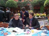 2002年11月9日当地报社记者于新闻发布会上采访法轮功学员