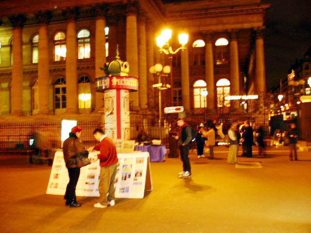 | 法轮功学员表演女声独唱 | 学生们对法轮功展桌兴趣浓厚 |