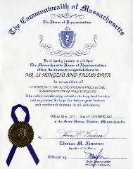 麻萨诸塞州众议院向李洪志先生和法轮大法致以最衷心的祝贺
