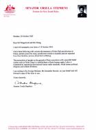 我将代表你们致信外交部长亚历山大-唐纳(Alexander Downer)先生,并会将信件副本呈送一份给你们。