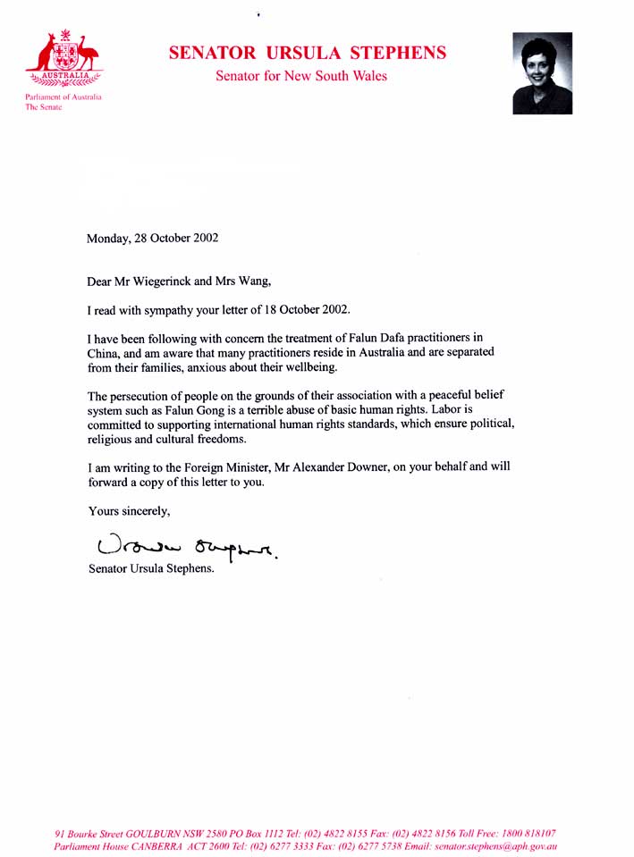 我一直关心着法轮功学员在中国大陆的遭遇,也清楚地知道许多居住在澳大利亚的法轮功学员同他们的亲人骨肉分离,为他们的安危而焦虑。