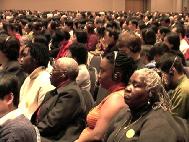 心得交流会大会在晚上七点左右圆满结束。第二天,学员还将就如何向可贵的中国人民讲清真相,如何向西方社会洪法,如何整体提高、跟上正法进程等几个方面进行专题大组交流,并将于午时至下午举办新闻发布会和“营救我们在中国被迫害的亲人”为主题的大型步行活动。
