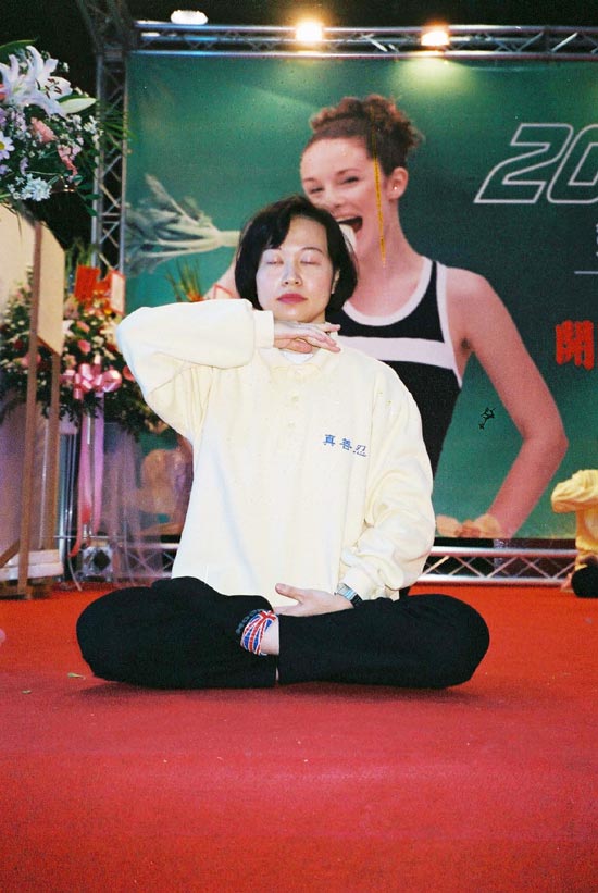 【明慧网2002年12月1日】近日,在台湾健康博览会上法轮功的功法展示吸引了许多人潮。人们奇怪,在那热闹的环境中怎么还能安详的打坐呢? 纷纷向学员打听了解法轮功。 有个小插曲,展台边来了一位小女孩,静静的从头到尾都在展台旁认真的学着功法,还不时的回头走向身后告之妈快来学法轮功呢。