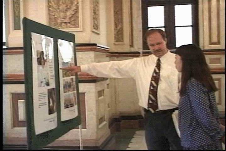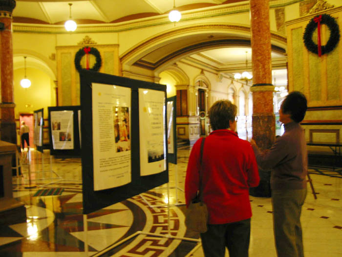 展览的三天也是州参众两院议员例会的三天,加上来参观州府的游客,整个州府上下人流密集,气氛热烈。很多人来展台拿大法资料。学员上前与来观看的议员,州政府工作人员,和游客讲法轮大法的真相。当地的周报刊登了摄影图片的消息, 题目为,“对无辜的迫害”,并刊登了一张大法学员在天安门被警察殴打的照片。有当地居民特意来看展览,看看到底是怎么回事。11区的参议员Louis Viverito先生被学员祥和的功法表演吸引,驻足观看,并问这个功法有什么好处,学员解释炼法轮大法能放松身心,促进身心健康。他主动要一份资料准备进一步了解。得知法轮大法学员在中国被严重迫害的情况后,他说,你们就是应该办展览,让更多的人知道真相。