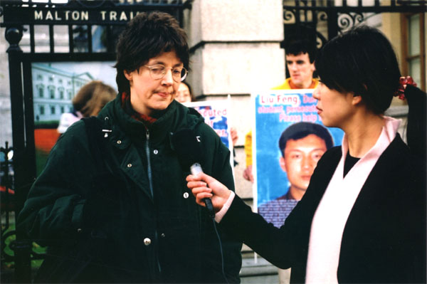 此外,爱尔兰参议员戴卫·诺若斯(David Norris)先生、国际特赦组织爱尔兰代表罗斯玛丽·瓦娜(Rosemary Warner)女士及爱尔兰法轮大法协会发言人杰瑞德·奥康纳(Gerald O’Conner)先生发表了讲话。诺若斯议员高度赞扬了爱尔兰法轮功学员没有忘记在中国被迫害的亲人和朋友的勇敢行为,表达了对中国(江XX集团)惧怕和迫害“真善忍”的不解和关注。国际特赦代表瓦娜女士对因修炼法轮功被阻止返爱就学的两位留学生的境况表示担忧,特别是深切忧虑目前仍被关押在劳教所的刘锋的境况,担心他会象赵明那样被残酷地酷刑折磨。诺若斯议员和瓦娜女士还对目前香港在大陆中央政府的压力下对基本法23条的立法表示极度关注,认为这完全是以法律的名义限制人权,其目的是将来可以合法地禁止象法轮功等组织的存在。