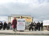 今天天气非常寒冷,来自大华府地区、纽约、波士顿、芝加哥、费城和北卡罗来纳州的关心香港前途的人士举着“声援香港市民反对23条立法”,“珍惜今日之自由”,“谨防专制之奴役”等横幅标语,共同呼吁停止23条立法。