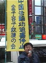 “法轮功难民支援会”北井先生在演讲中说,“在中国,法轮功学员仅仅因为和平地实践自己的信念就受到镇压,这是不容忽视的严重事情。其中,也包括与日本人结婚、住在日本的金子容子。为了金子容子的重获自由,日本各位的声音对日本政府、对中国政府都是有效力的。而且对法轮功的镇压,已经不仅是中国国内的问题。在日本学习法轮功的华人中,有回到自己祖国中国却被拒绝入境、或者护照更新被拒绝。这些人直到能平安回国之前,不得不作为难民在日本受到保护。请各位一定关心此事。”
