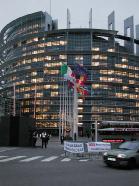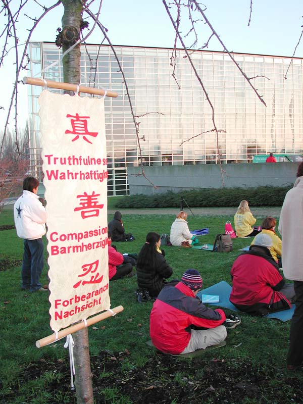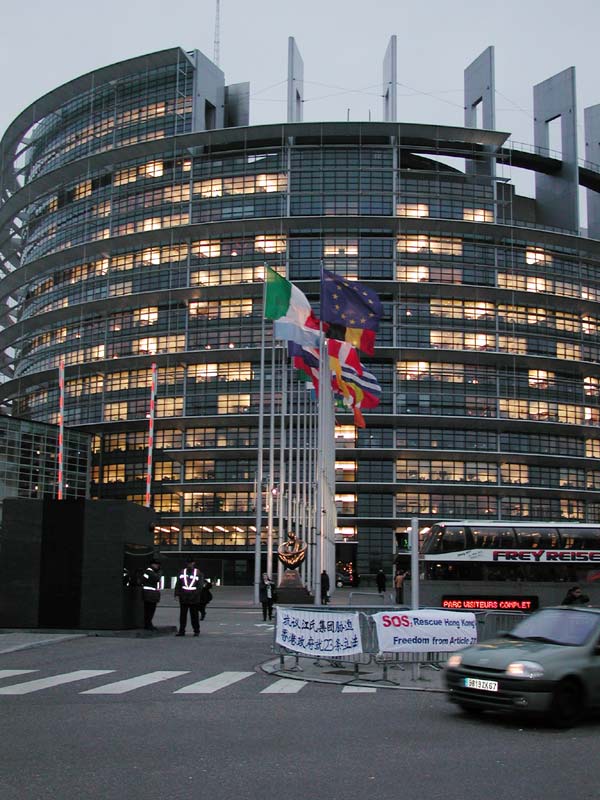 12月18和19日两天,来自法国,英国,德国,瑞士,比利时,爱尔兰,意大利,丹麦,荷兰,爱尔兰,奥地利等欧洲国家的部分学员,在法国斯特拉斯堡欧洲议会大楼前集体炼功、发正念,呼吁欧盟反对香港23条立法。