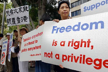 “香港政府基本上可使用该法律逮捕任何在香港从事北京[江氏集团]不喜欢的事情的人”,法轮功发言人托尼.戴对路透社记者说。