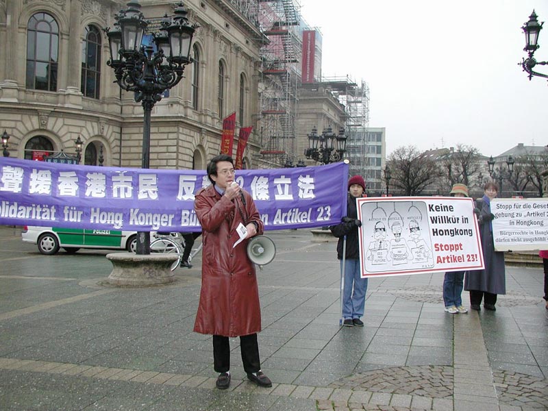 集会上还宣读了德国青年公职人员协会反对香港第23条立法草案的声明‘捍卫香港的人权’。声明中提到:德国青年公职人员协会支持欧洲议会最新的提案,维护香港的基本人权,并强烈要求香港特区政府遵守其在联合国有关经济、社会与文化权利公约以及公民与政治权利公约中的义务,并重新审核现有法律,使之与公约保持一致,而不是建立新罪名以国家安全的名义限制香港人民的自由。