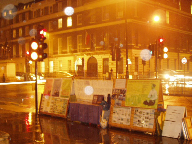 还有个中国男孩阿果的故事。他刚从大陆来,在中国城一家餐馆打工。他们餐馆的大厨师是个正义感很强的人,凡是到他家的朋友他都给他们看我们大法的真相光盘,阿果就是在那看到大法真相的。他后来接连看了十多遍这个光盘,然后打电话想跟我们学功。可惜电话没打通。一天他去公园玩,正好路过使馆门前,非常高兴地跟我们学了功法动作。不久后的一天,他专门从麦当劳买来许多吃的送给我们,他说我们太辛苦了。还有一天下雨,我打坐结束后才发现他站在那等我,雨水把他的衣服全淋湿了。他是专门来给我们送海鲜炒面的。我谢过他后要给他钱,他坚决不肯收,转身就跑开了。昨天,我打完坐后,又看见他站那等我,他现在在利物浦上班了,这次回伦敦看看,给我们又送来很多水果。他说很想和我们聊聊,我们就象他的亲人一样,聊完以后心情就好多了。