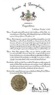 鉴此,宾州参议院在这充满喜悦的重要时刻荣幸地嘉奖法轮大法;我们肯定地宣布,这一功法促进了成千上万拥戴他的人的内心祥和、给予了他们幸福康乐,并提倡追求自我完善;