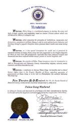 鉴于,自从1997年法轮功传入宾夕法尼亚州和德拉华郡以来,该功法超越了宗教、文化、社会、经济和种族界限,修炼人数不断增多;并且