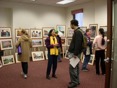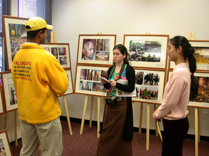 看完正法之路图片展,大学生们表示了对迫害的谴责。许多学生向法轮功学员们询问如何能进一步帮助尽快结束这场邪恶的迫害。学员们告诉他们要将法轮功的和平历程讲给更多的朋友,他们表示一定尽力做,让更多的人们知道法轮功,支持法轮功。一位女大学生,在看完图片展后,感叹地说,“在美国虽然有自由,但人们生活得很紧张,人容易愤怒与烦躁。看到法轮功学员们是那么的祥和,深受感动,内心十分向往那种美好的境界。”