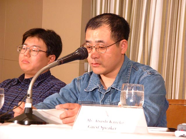 会上, 金子容子的丈夫金子笃志(Kaneko Atusi)讲述了容子在北京被抓和非法关押的经过。今年5月24日,容子在北京与两名日本女公民在发放法轮功真相资料时被中国公安逮捕、拘留。今年6月24日,容子被北京市人民政府劳动教养管理委员会判1年零6个月劳动教养,现被关押在北京市的女子劳动教养所。