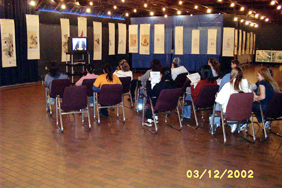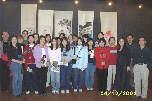 三天中,前来观看画展的人群络绎不绝,有政府官员、非政府组织人员、教授、大学生、高中学生等。参观者中有不少中国学生学者。很多都是父母带着孩子一家人一起来的。当地学员融洽地和前来参观的人们交谈讲真相。有两所当地中学的艺术教师带着学生来参观画展,完成他们的“户外考察作业”(FIELD TRIP PROJECT)。中学生们不但仔细地观赏中国传统艺术作品,而且参加了我们的法轮功介绍会。很多西人也表示了强烈的学功愿望。前来观看画展的人们纷纷在留言簿上留下了他们对“真善忍”带给人们美好的感激和对法轮大法的支持。