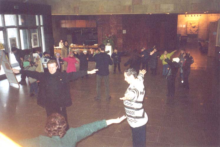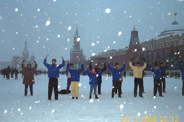 邪恶气数已近,环境已经改变,人们对大法弟子的态度也在改变。红场上一般对任何活动都是很敏感的,但我们却在红场自由地向人们展示了功法,并录了像。众多法轮清晰地显现在我们的炼功照片中(当时没有下雪)。谢谢师父的鼓励,弟子们一定加倍努力向世人讲清真相。所有参加今天这次活动的学员都感受到了大法的圆融和威力。
