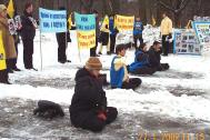 学员们不断地发正念清理邪恶。大使馆门前这条街行人不多,但每一个过往的人都停了下来,认真地看展板上的图片资料,接过学员递来的真相材料,关心地向学员了解情况。尽管中国驻莫斯科大使馆和驻圣彼得堡领事馆一直拒绝接受我们呼吁停止镇压的公开信,但是我们不会停止我们的和平抗议活动。我们希望,大法弟子对那些参与迫害法轮功的人们的良心的和平和理性的呼吁不会没有结果,真诚和大忍之心终会使他们明白自己所施恶行的严重后果和对此应承担的责任。