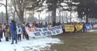 (二○○二年冬季奥运会八日即将在美国犹他州盐湖城开幕,获得大会许可举办请愿会的全美各地法轮功学员五百余人,至五日起即陆续抵达盐湖城,并在六日发表公开信,今天上午也在盐湖城市区举办游行活动。)
