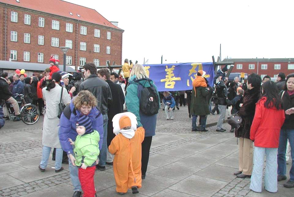 大法弟子们带上做成“红包”的真相光盘,以及中、丹文的真相资料,笑容可掬地向同胞们祝福一声“新年好!”并递上新年礼物。绝大多数的华人都是欣然接受。千余盘真相光盘和万份大法资料,在短短的几个小时内,都已到了同胞们的手上。不多时,我们手中的材料已是供不应求。