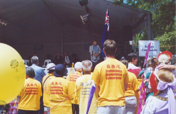 今天的多国大游行吸引了堪培拉各个民族和文化团体的参与。大法弟子的团体“法轮大法在堪培拉”于2001年加入了首都领地多元文化协会,今年以正式团体成员参加多国大游行。