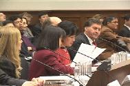 本次听证会一共有五人出席作为受害证人。法轮功学员陈女士,向主席团和到场听众,陈述了中国政府对其家庭在人权和宗教方面的迫害情况。其儿子由于不愿放弃对法轮功的坚定信仰,两年多以来,被无理关押,遭受了各种虐待和折磨。陈女士说,镇压法轮功,违背了全中国人民的意愿。江泽民邪恶集团利用国家媒体和宣传,竭尽全力地欺骗民众,但是,“跟我们接触到的人,认识我们的人,都非常尊敬我们,知道那些宣传都是假的。”