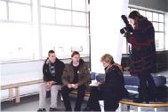 图书馆工作人员非常友好、合作,并将钥匙交给我们,以便我们提前布置会场。我们清晨7点就开始布置桌椅、陈列“正法之路”图片,9点半准时开幕典礼。我们还在图书馆里布置了一个展台,这个展台将在接下来一周中对公众开放。继而,学员们同发正念,清除一切干扰。随后,几名学员站在图书馆外边向光顾图书馆的人们发请帖,欢迎他们参加庆典活动。这种做法很有效,很多游客、外国留学生及当地居民都应邀进来观看了图片展,并进一步了解法轮大法。