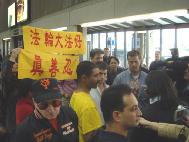 来自洛杉矶地区的西人法轮功学员,22岁的大学生马克.哥德乐(Mark Gardner)、25岁的经济顾问阿伯特.罗曼(Albert Roman)和29岁的中医师吉娜.桑切斯(Gina Sanchez)因展开一面横幅并高呼说“法轮大法好”,也在天安门广场上遭逮捕、踢打并被丢入警车。马克说:“就在我刚刚要从口袋拉出黄色法轮大法横幅,警察随即将我扑打在地、我站起来、警察又将我扑打在地、后强逼我将头摆于两膝之间让我无法喊‘法轮大法好’、并毒打我的眼睛。”马克的右颊还带着明显的淤血块,左颈上也留下了一块红色的伤痕。