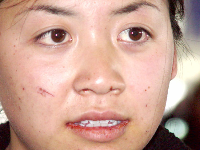身为美国公民的李春泉告诉记者,在天安门广场,因为有一个中国人的面孔,弱小的她被5个警察围着毒打,满脸是血。被非法拘留24小时期间,她又被几名男警察数次殴打、并审讯,所有值钱的物品被他们占为己有,她被禁止与美国大使馆联系。2月15日她被强行遣返回美国,走下飞机的李春泉身上、脸上到处是伤痕。