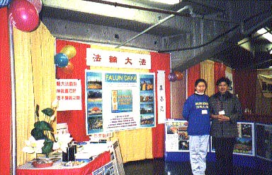 【明慧网2002年2月19日】2002年2月8日至11日,在温哥华太平洋国家展览馆举行了一年一度春节前的“贺岁展销嘉年华”活动,有200多参展商参加。温哥华大法弟子也参加了这次展销会。在展销会上,学员们展示了法轮功功法,展出了有关镇压,迫害及国际声援的图片,并不断地播放自焚真象的录像,使很多人了解了真象。“法轮大法好”优美祥和的歌曲给人们带来了美好的感受并留下了深刻的印象。因为是迎新年活动,来往宾客络绎不绝,而且大部分是华人,所以是非常难得的洪法机会。四天的时间,客流量超过十万人。有两位从东北来旅游的人,主动向我们索要了一些大法资料和真象光盘,说要带回去给朋友看。附近摊位的人也对我们表示关切,闲时过来和我们聊了很多,这样我们深入地和他们谈了很多众人不了解和不理解的事情。当我们的几名小弟子演示法轮功功法时,她们纯洁可爱的表演吸引了很多路过的人,他们边看边赞叹不已,认为太美妙了。
