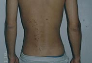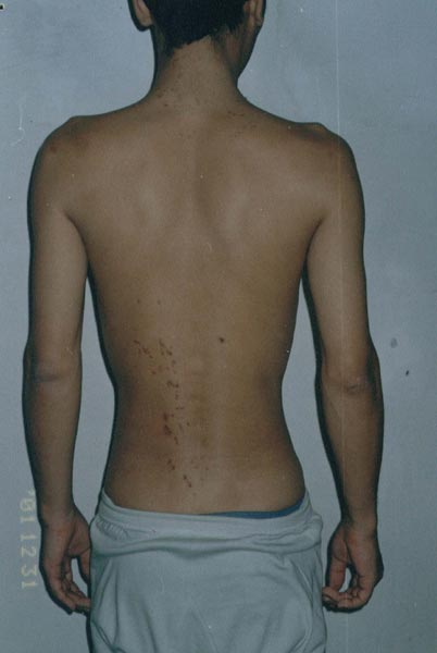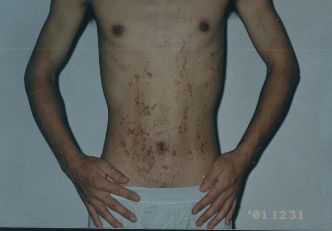 在2001年12月24日晚,由于我站立时间长,已经呕吐,不能支持,两手浮肿,警察不管。其后,警察中有个叫薛海(音)的,为了让我说出我的姓名,用电棍电我身体的敏感部位,如:胸、腹、小腹、后腰、两肋、颈部、下颌、耳后及手等处。警察为了不让我喊,用抹布堵我的嘴;在我正视他们时,他们用布等挡我的眼睛。