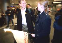吴瑞克.达尔格林(Ulrik Dahlgren)在星期二晚从中国回到马尔默。他因在中国弘扬法轮功而坐了牢。抵达卡斯特罗机场迎接吴瑞克.达尔格林的人群中有他的女友夏劳特。