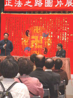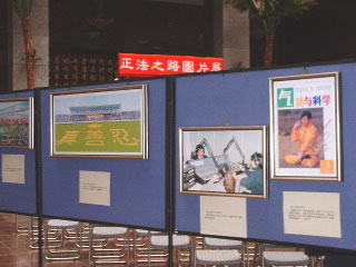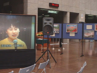 一张张精美的图片述说着法轮大法自1992年由李洪志师父传授出来后,众多学员在台湾、中国大陆、及世界各地蓬勃发展的真实记录。另外,在现场更以大型电视机播放着由台湾学员们制作的洪法讲真相影片及澄清自焚案真相的影片。许多在台北市政府上班的人员与至市政府洽公的民众都因图片展而与大法结了善缘,更有对于法轮大法修炼方式不解或有误会的民众藉此机会与现场帮忙的法轮大法学员交流后化解了心中的疑惑。