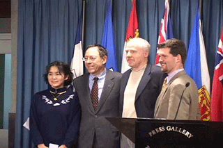 在加拿大,有这么多肯于奉献的人,有国际特赦,有这么多住在加拿大的法轮功修炼者的亲朋好友和同修,他们将会继续大声疾呼,而且他们理当这么做。在过去的几个月里,三名加拿大西人法轮功修炼者,泽农-道耐奇(Zenon Dolnyckyj )、康妮-奇普卡(Connie Chipkar)和杰森到天安门广场,呼吁世人关注被关押和折磨的法轮功修炼者的困境。