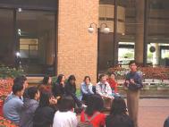 首先由就读台大城乡所的学员为高中生介绍台大法轮功研究社及台大的校园景观及历史特色。