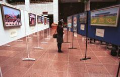 法轮功正法之路图片展二十五日在台北市政府中庭举行,展出珍贵照片一百余幅,记录法轮大法在台湾、中国大陆及世界各地蓬勃发展的现况。(中央社记者郑杰文摄 二月二十五日)