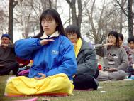炼完功后,芦洲的学员早已摆好为大家准备的丰盛早点,有包子馒头、豆浆奶茶、四样菜还有萝卜汤。公园里的五十多人并不一定相互认识,即使常见面,也不见得知道对方的名字。但是这里真像是一个大家庭: 他们看到对方的不足,会为对方善心指出;看到同修在痛苦的过关中,互相打气鼓励。记得我初次接触这些人,给我感觉是他们好象都不怕学员会“跑掉”,没有殷勤的招待、没有积极的至住家拜访或电话拉拢、没有规定任何事情,可是海内外包含各种肤色与种族的学员却与日俱增,是什么样的法可以有这样的威力?