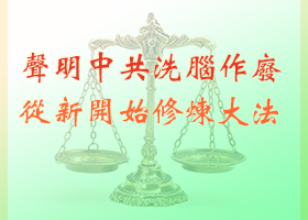 244人发表声明──声明强化洗脑作废 我悟到那些向邪恶妥协、放弃大法的人的说法,是对自己,对众生的最大的不负责任,是最大的私,因为我们肩负着助师正法,救度众生的伟大使命。只有在法中不断的提高,完全溶于法中,才能完成这一伟大历史使命,亿万年的誓言才能兑现。