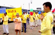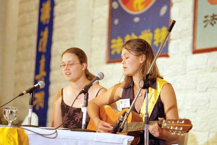 | 澳大利亚学员以印尼语唱出自写的歌“泪水自天落下” | 新加坡学员合唱“法轮大法好” | 海外弟子合唱“法轮大法好” |