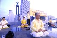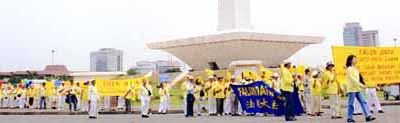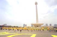 下午一点钟,学员们聚集在民族纪念碑广场先发正念,准备启程。在马来西亚,目前非华裔学员非常少,见到印尼能有如此众多的非华裔学员感触是很深的。