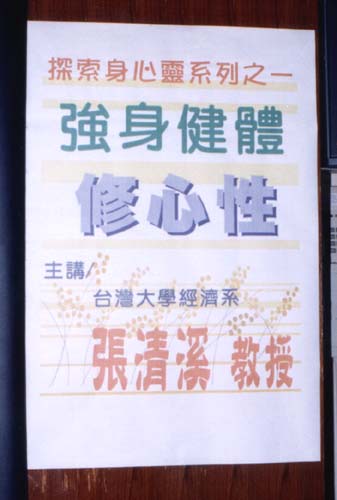 张教授从张夫人因友人的介绍而有幸接触大法开始娓娓道来。虽然大法让张教授夫人脱离了困扰多年的病苦,可是受过经济学严谨逻辑训练的张教授,并没有因此就对大法信服。直到次年的元宵节,全家坐在车里前往赏花灯,因为塞车而在车中听了两个多小时李洪志老师的讲法录音带,就因为这一听,使得张教授对大法的法理折服不已,也在心中萌生修炼的念头。不过,真正踏入修炼,却又隔了半年之久。张教授认为博大精深的法轮大法,才让他从此有了一个真正的「人生观与宇宙观」。对于当时没有及时把握机缘,一再蹉跎,张教授回想起来感到无比可惜,也诚恳希望在场的听众不要错失良机。