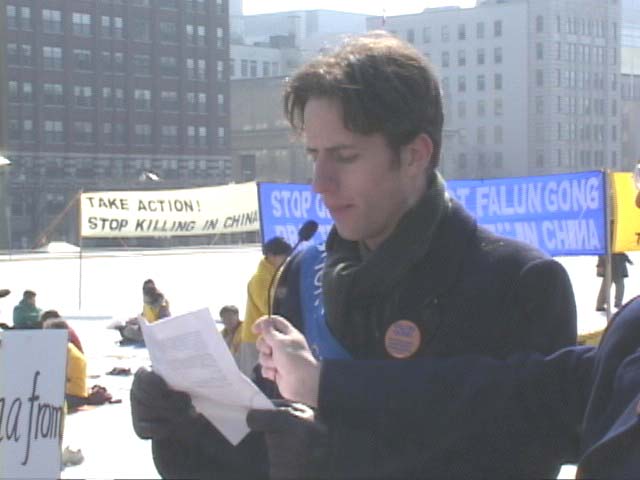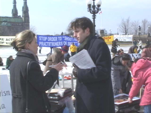 下午1点45分,参加三十六小时绝食的代表向总理办公室递信,表达法轮功学员敦请加拿大政府和善良的加拿大人民共同关注中国大陆发生的对法轮功学员血腥镇压的严酷事实。总理办公室工作人员代表总理接收了信件。