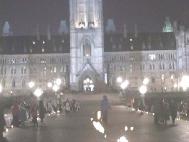 夜幕降临,近百名绝食学员和支持学员在通向国会山的甬道上点燃了一根根蜡烛,烛光中,清晰地照映着大法弟子坚定的面庞。