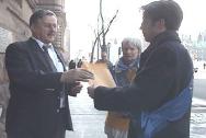 深夜11点加拿大育康省国会议员路经这里,他被深深地感动了,他来到学员们面前,与每一位以“静坐绝食”来表达心声的善良慈悲的法轮功学员们一一握手致意。他告诉学员们:“我自始至终都是支持法轮功的。你们辛苦了,你们要坚持下去。”整个场面十分感人。