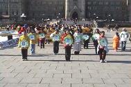 | 泽农在新闻发布会上宣读声明 | 学员炼功 |