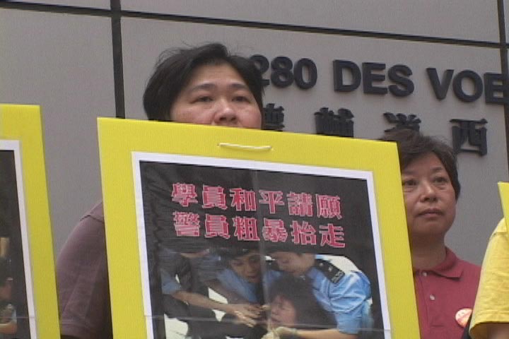 | 一批香港学员在西区警署外请愿,要求释放在押学员。 | 16名被诬告的学员步出西区裁判署。 | |