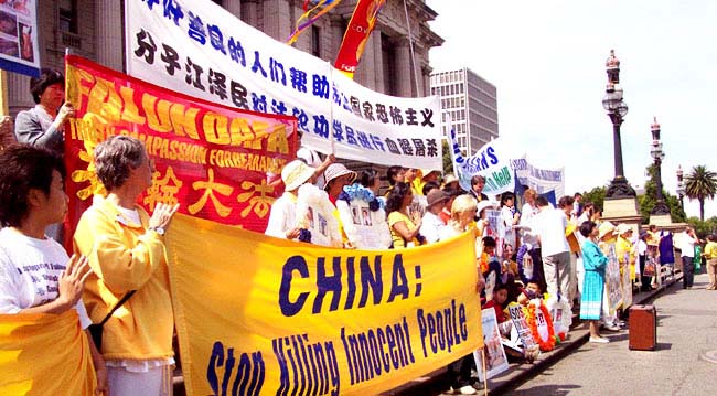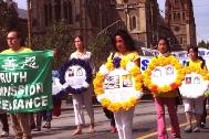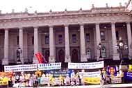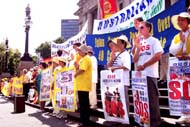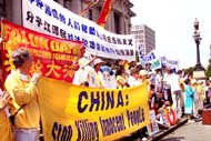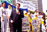 刚刚从天安门请愿归来的学员玛丽莲和戴维也在会上做了简短发言,他们一致表达了对江泽民政府对法轮功学员血腥镇压的强烈抗议。